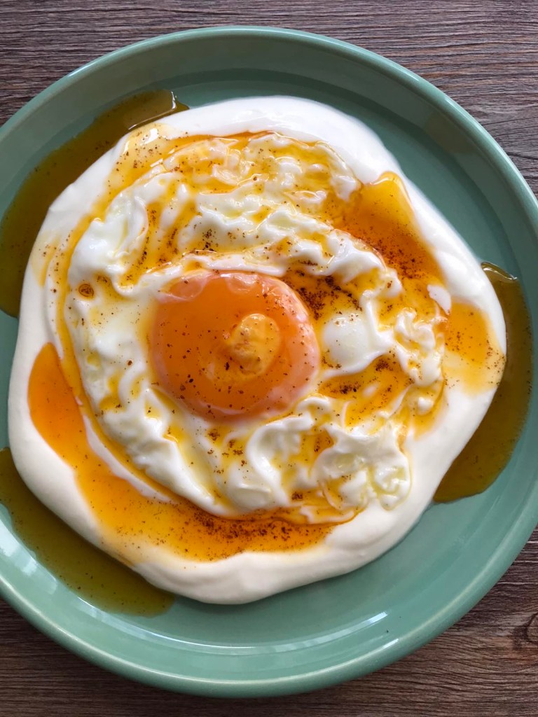 Tip: Turkish eggs, or Çılbır, is traditionally made with poached eggs but I make them with fried as I’m never dexterous enough to poach eggs first thing in the morning!