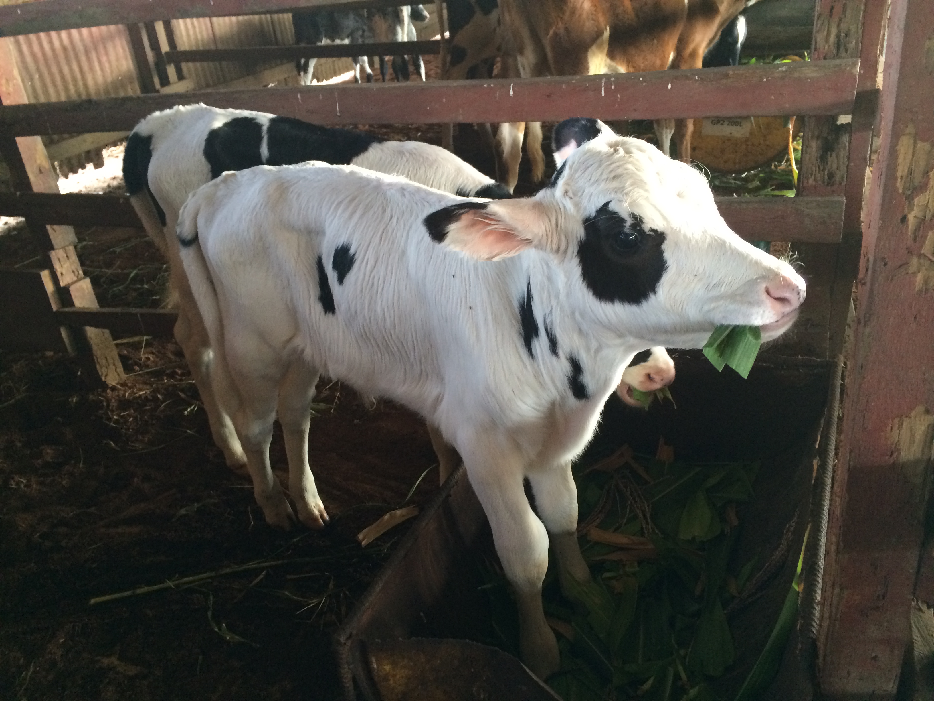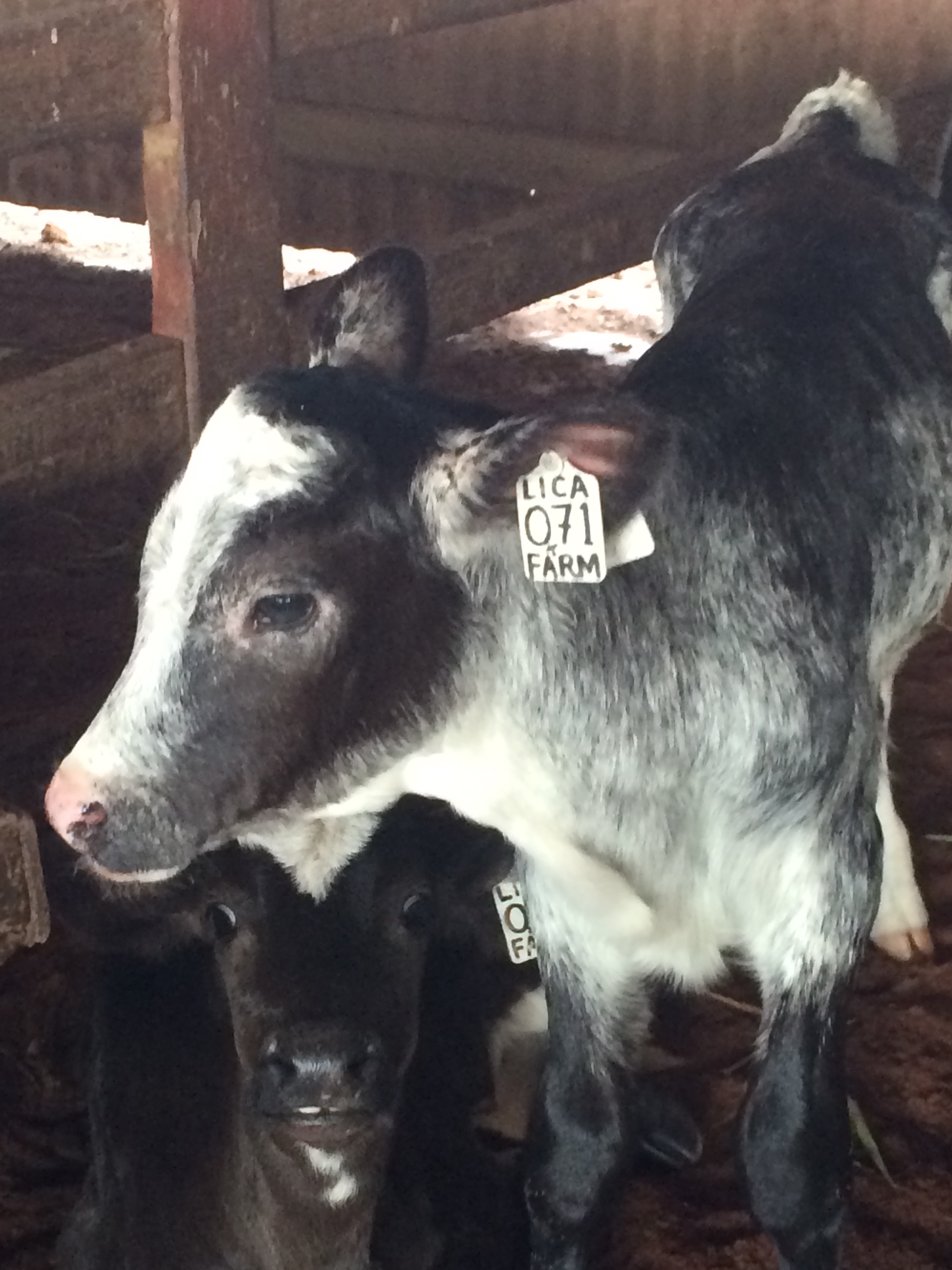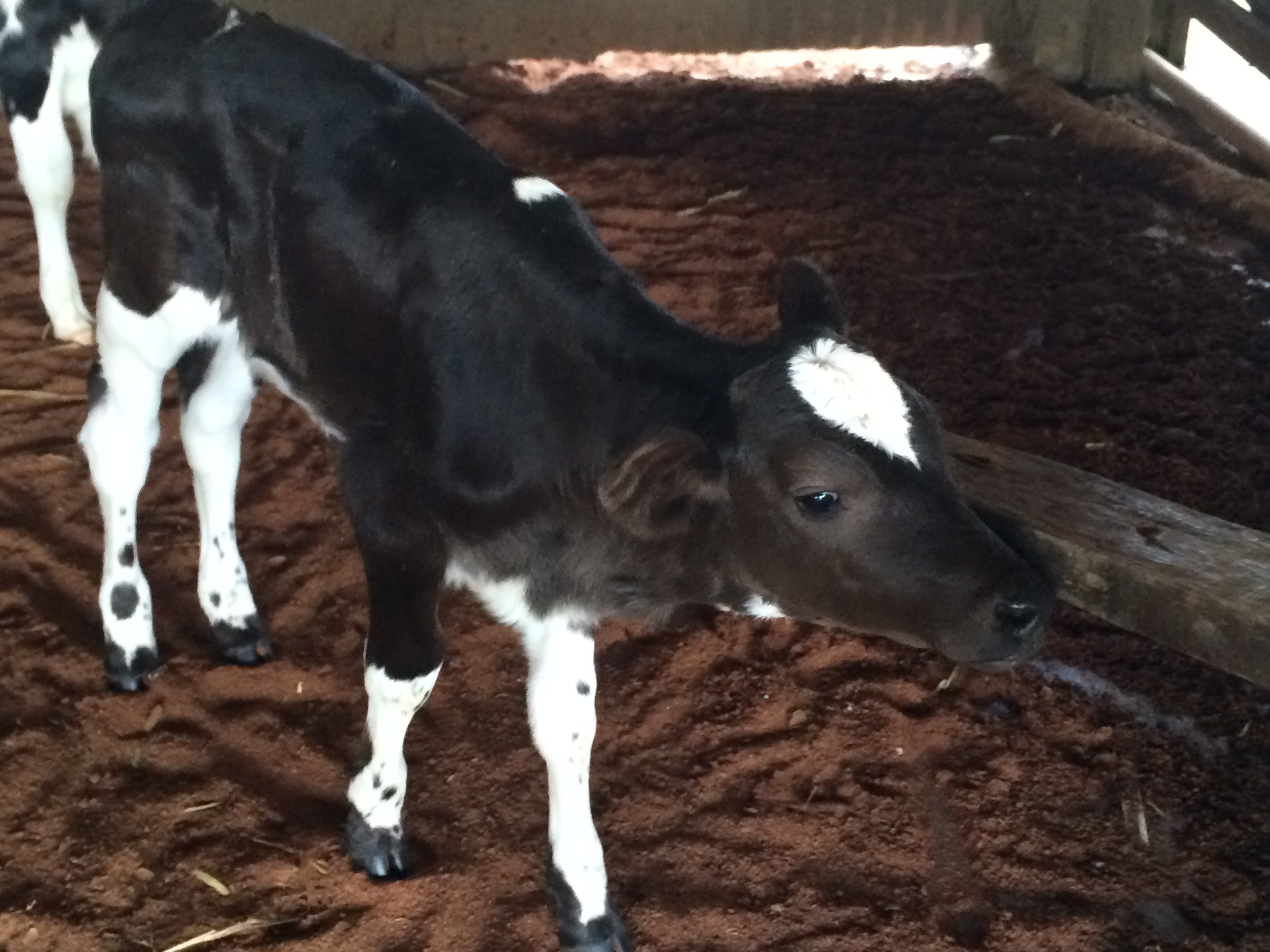 This almost all-white calf is the newest darling. We named her “Peas”, for her black-eye. 🙂