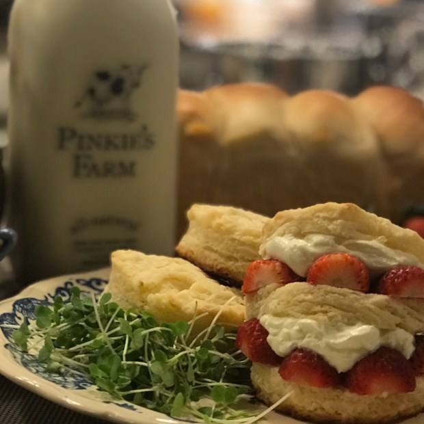 For effortless flakiness in biscuits, scones, and shortcakes, use REAL buttermilk! Of course, the basics of making biscuits and scones remain the same: use COLD (as in straight-out-of-the-freezer cold) ingredients, from butter cubes, dry ingredients (we stick ours in the freezer for a bit), and the buttermilk. The colder it is, the more the butter won’t melt and the flakier it becomes.